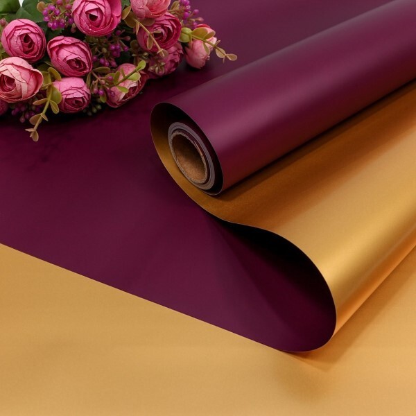 Плёнка флористическая матовая в рулоне двухсторонняя 58 см*10 м Золотой/Бордово-фиолетовый 50 мкм 443925збф купить оптом и в розницу предлагает интернет-магазин Радуга 52. Оптовая цена действует при заказе от 3 000 ₽.