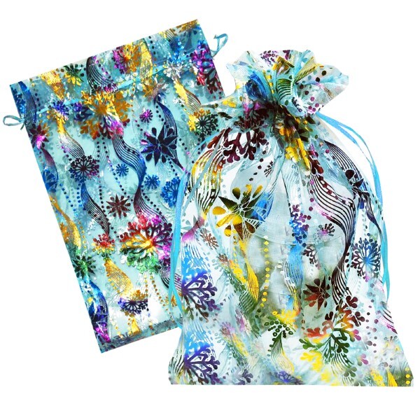 Мешок новогодний подарочный органза 25*35 см "Снежинки" 915022