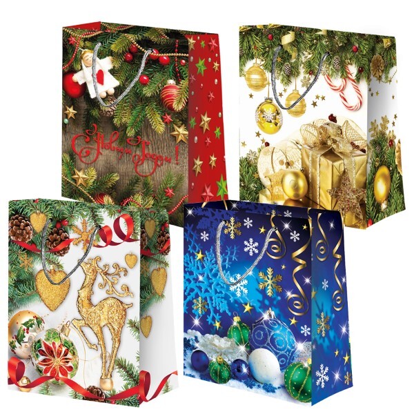 Пакет подарочный новогодний бумажный 18х23х10 см Новый год (микс) 60013 купить оптом и в розницу предлагает интернет-магазин Радуга 52. Оптовая цена действует при заказе от 3 000 ₽.