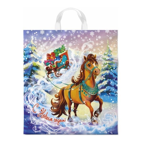 Пакет подарочный новогодний полиэтиленовый с петлевой ручкой 38х42 см 40 мкм Савраска 25 шт
