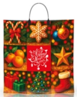 Пакет подарочный новогодний полиэтиленовый с пластиковой ручкой 36х34 см 80 мкм Новогодний коллаж 10 шт
