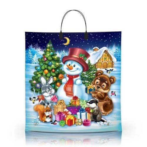 Пакет подарочный новогодний полиэтиленовый с пластиковой ручкой 40х40 см 80 мкм Снеговик 10 шт