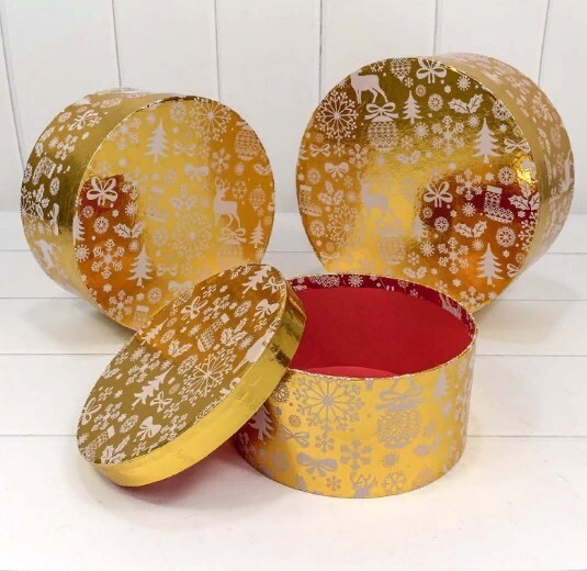 Набор новогодних подарочных коробок 3 в 1 круг 25.5*11.5 см Золотой 444850з