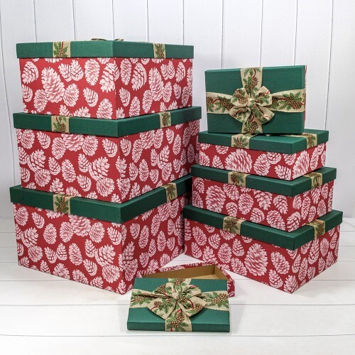 Набор новогодних подарочных коробок 8 в 1 прямоульник 53*43*26 см Шишки с бантом 441629
