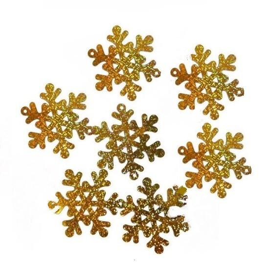 Блестки "Снежинка" 40 мм голография золото 50 г