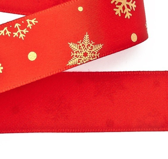 Лента атласная 2.5 см 20 ярд Снежинки красный/золото 171698 купить оптом и в розницу предлагает интернет-магазин Радуга 52. Оптовая цена действует при заказе от 3 000 ₽.