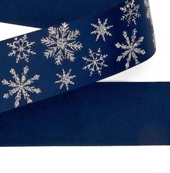 Лента атласная 2.5 см 20 ярд Снежинки темно-синий 171699 купить оптом и в розницу предлагает интернет-магазин Радуга 52. Оптовая цена действует при заказе от 3 000 ₽.