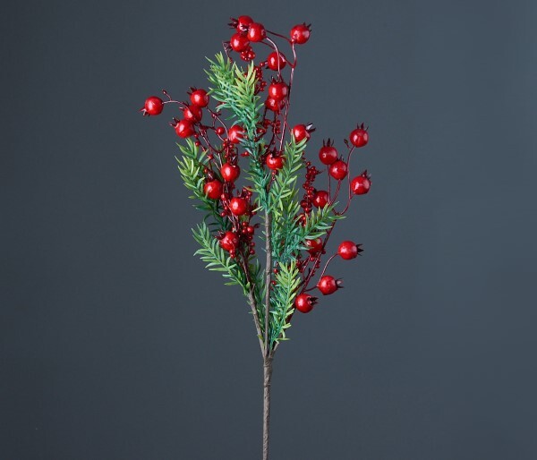 Ветка декоративная с красными ягодами шиповника 78 см 50118