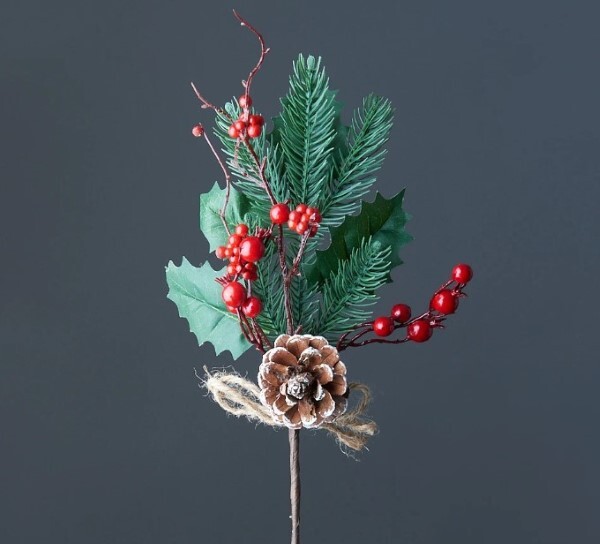 Ветка декоративная с шишкой и красными ягодами 38 см 50120 купить оптом и в розницу предлагает интернет-магазин Радуга 52. Оптовая цена действует при заказе от 3 000 ₽.