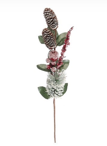 Ветка с ягодами, яблоком и шишками 68 см 50137