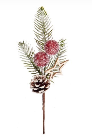 Ветка заснеженная с ягодами, шишкой и звездочкой 22 см 50132