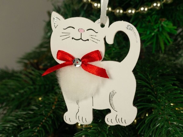 Ёлочное украшение деревянное "Котик" 7*9 см Белый/красный 153960 купить оптом и в розницу предлагает интернет-магазин Радуга 52. Оптовая цена действует при заказе от 3 000 ₽.