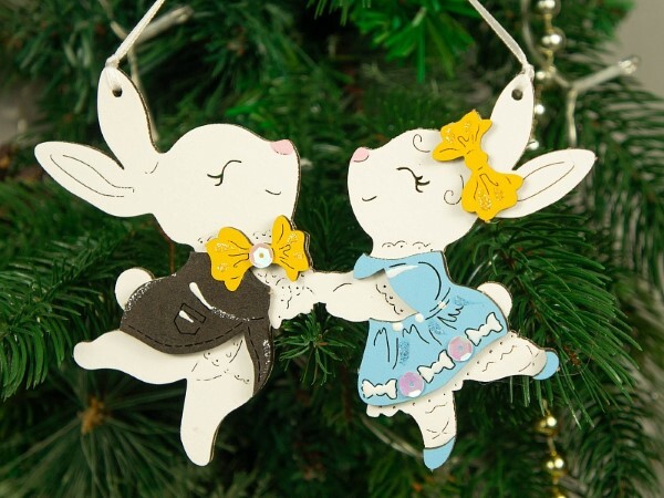 Ёлочное украшение деревянное "Зайки-парочка" 15.5*11 см Голубой/желтый 153963 купить оптом и в розницу предлагает интернет-магазин Радуга 52. Оптовая цена действует при заказе от 3 000 ₽.