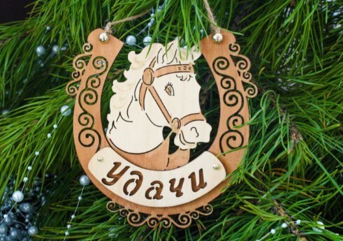 Ёлочное украшение из дерева 13.5*14 см "Удачи" с лошадью 154777