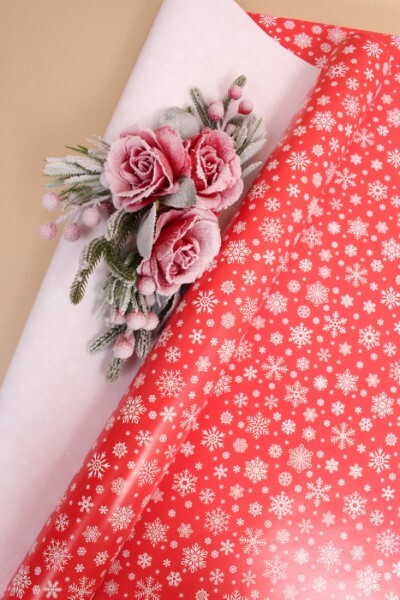 Бумага упаковочная новогодняя глянцевая 70*100 см Снежинки на красном 10 л/уп 568033