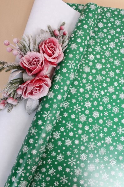 Бумага упаковочная новогодняя глянцевая 70*100 см Снежинки на зеленом 10 л/уп 568037 купить оптом и в розницу предлагает интернет-магазин Радуга 52. Оптовая цена действует при заказе от 3 000 ₽.