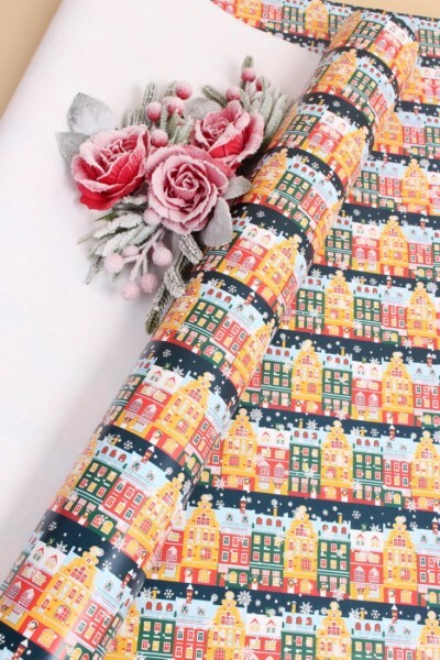Бумага упаковочная новогодняя глянцевая 70*100 см Зима в городе 10 л/уп 568030