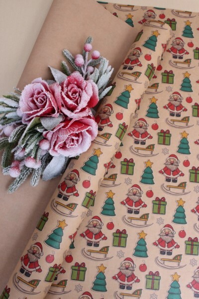 Бумага упаковочная новогодняя крафт 70*100 см Дед Мороз с сюрпризами 10 л/уп 568021