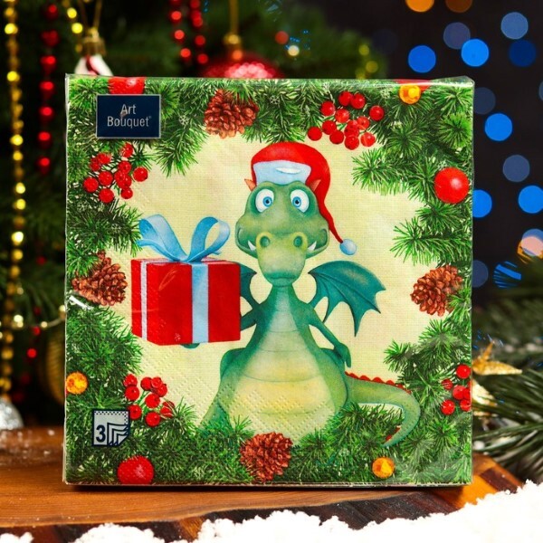 Салфетки новогодние бумажные 33*33 см Символ года 2 слоя 20 листов 901874