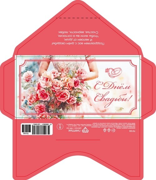 Открытка-конверт 16.8*8.3 см С Днем свадьбы (розовый букет) 539193 купить оптом и в розницу предлагает интернет-магазин Радуга 52. Оптовая цена действует при заказе от 3 000 ₽.