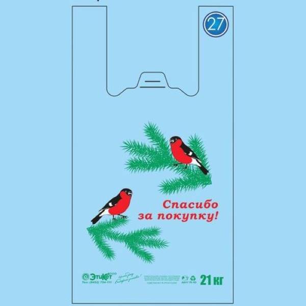 Полиэтиленовый пакет майка ПНД 12 мкм 26+14х48 см Снегири 100 шт