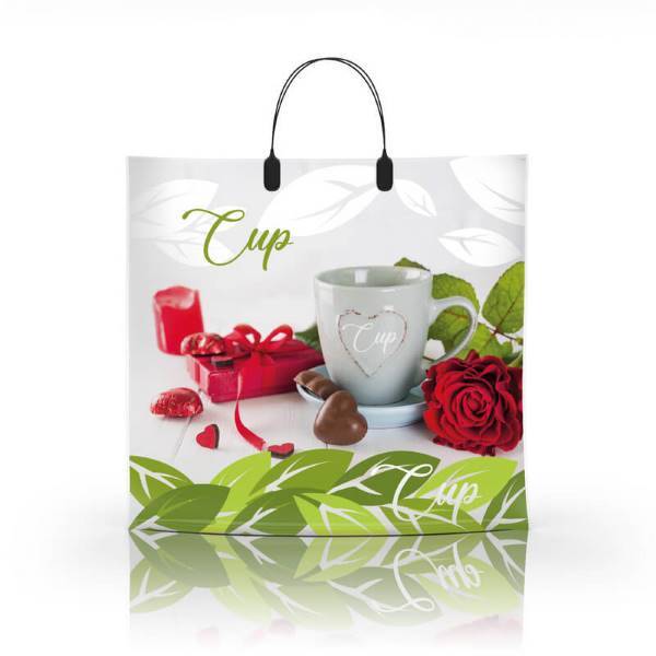 Полиэтиленовый пакет ПВД с пластиковой ручкой 80 мкм 36х34 см Чашка 10 шт