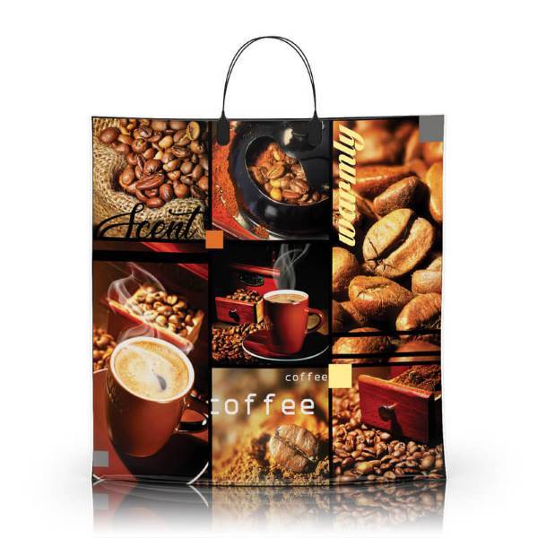 Полиэтиленовый пакет ПВД с пластиковой ручкой 80 мкм 40х40 см Чашка кофе 10 шт