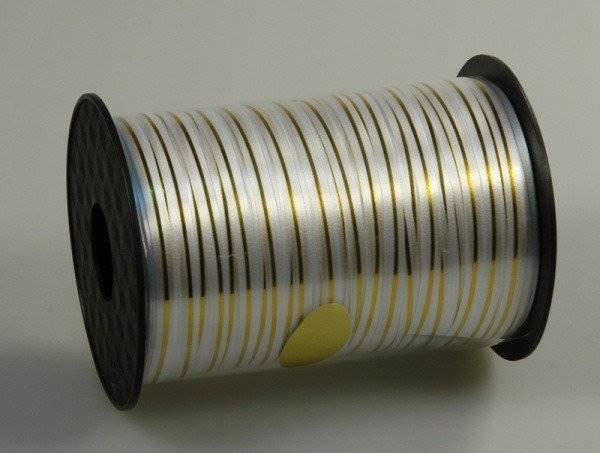 Лента полипропиленовая "NARK ISS" бобина с золотой полосой 0.5 см*250 ярд Белая