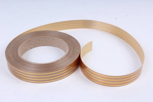 Лента полипропиленовая с золотой полосой 2 см*50 ярд Многополоска бронзовая 561215бр