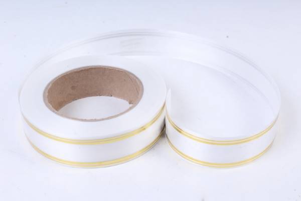 Лента полипропиленовая с золотой полосой 3 см*50 ярд Классика белый 5600681