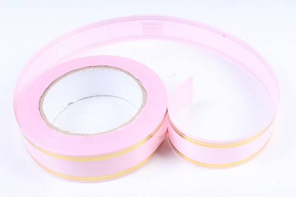 Лента полипропиленовая с золотой полосой 3 см*50 ярд Розовый 5600684