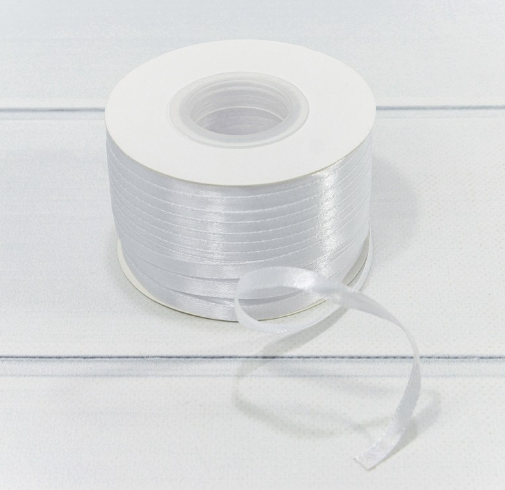 Лента атласная сатин 0.6 см*250 Y Бобина белый 580-6/01