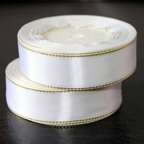Лента атласная сатин 2.5 см*25 Y Белый с золотой полосой 534412 купить оптом и в розницу предлагает интернет-магазин Радуга 52. Оптовая цена действует при заказе от 3 000 ₽.