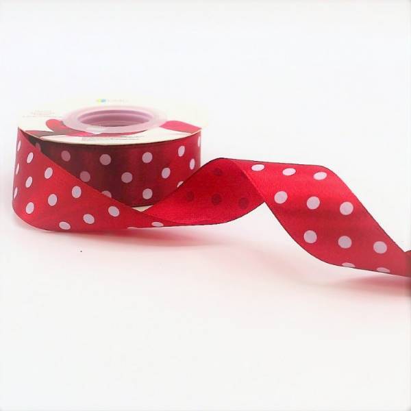 Лента атласная сатин 2.5 см*25 Y Горох бордовый 560-25/33