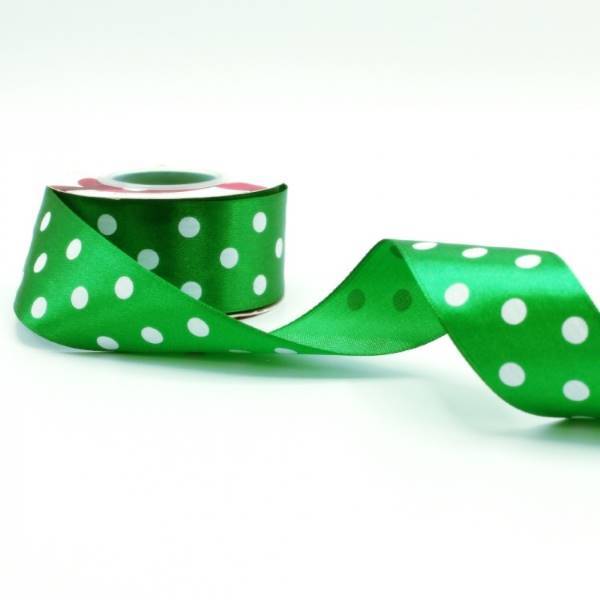 Лента атласная сатин 3.8 см*25 Y Горох зеленый 560-38/76