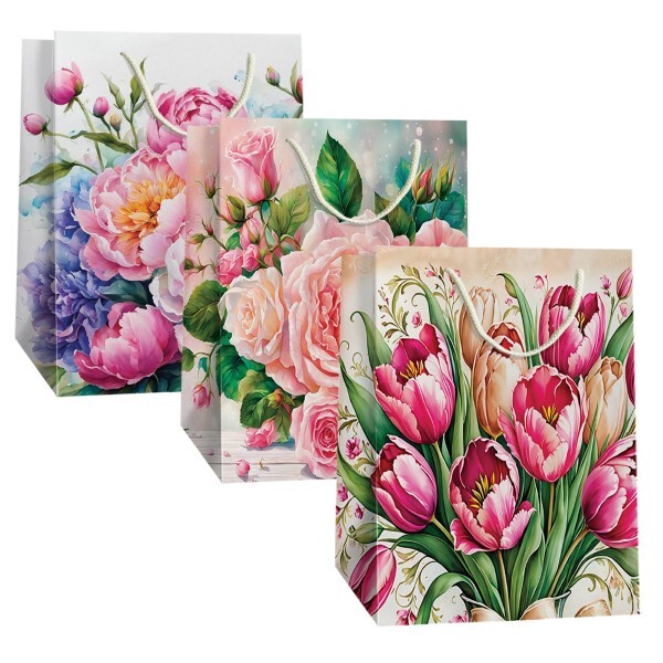 Пакет ламинированный подарочный бумажный 18х23х10 см Цветы (микс) 60011