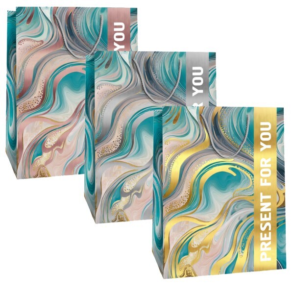 Пакет ламинированный подарочный бумажный с тиснением 26х32х13 см Мрамор 60006