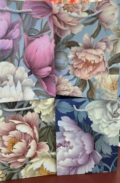 Подарочный пакет люкс бумажный с блестками 14х17х7 см Цветы 58653