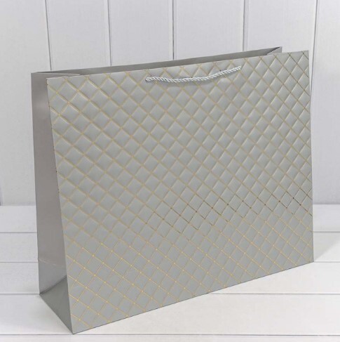 Подарочный пакет люкс бумажный с тиснением 50х40х15 Ромб серебро 449943
