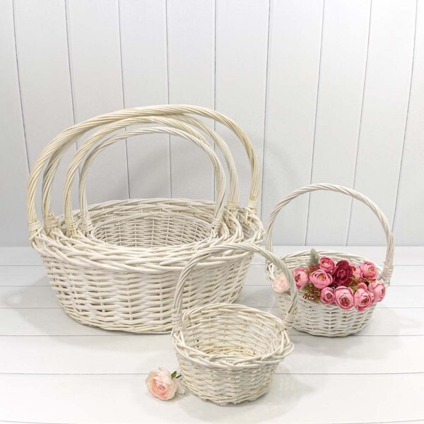 Набор плетеных корзин 6 шт (ива) Круг 49*19/52 см С ручкой белый 441081