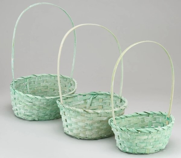 Набор плетеных корзин из 3 шт (бамбук) 27*21*H10/38 см Светло-зеленый 50046