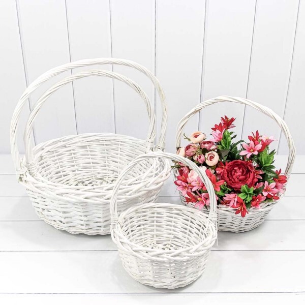 Набор плетеных корзин из 4 шт 40*15/44 см Круг с ручкой белый 447567