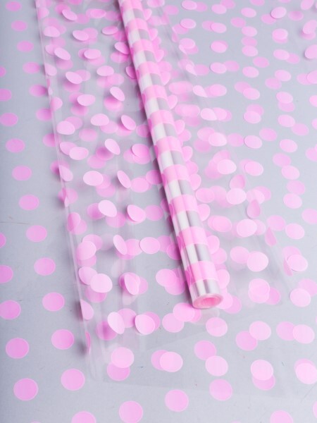 Пленка упаковочная прозрачная с рисунком для цветов и подарков в рулоне Горох18 70 см*8 м Розовый 621391 купить оптом и в розницу предлагает интернет-магазин Радуга 52. Оптовая цена действует при заказе от 3 000 ₽.