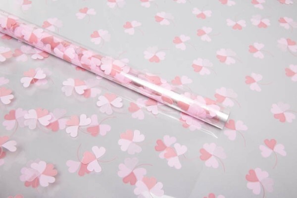 Пленка упаковочная прозрачная с рисунком для цветов и подарков в рулоне Клевер 70 см*8 м Розовый пыльный/розовый жемчуг 62420рр купить оптом и в розницу предлагает интернет-магазин Радуга 52. Оптовая цена действует при заказе от 3 000 ₽.