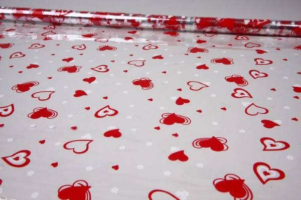 Пленка упаковочная прозрачная с рисунком для цветов и подарков в рулоне Валентин 70 см Красно-белый