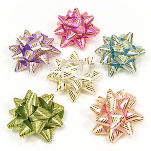 Бант-звезда 7.6 см Золотые полоски (микс) 6 шт/уп 441648 ЦЕНА ЗА УПАКОВКУ купить оптом и в розницу предлагает интернет-магазин Радуга 52. Оптовая цена действует при заказе от 3 000 ₽.