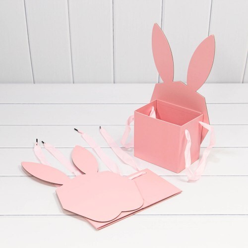 Коробка для цветов сборная 18*9.5*31 см Зайка розовый 443305