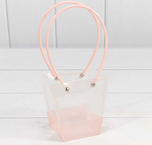 Пакет подарочный пластиковый 12*12.5*8 см Ваза для цветов розовый 445080