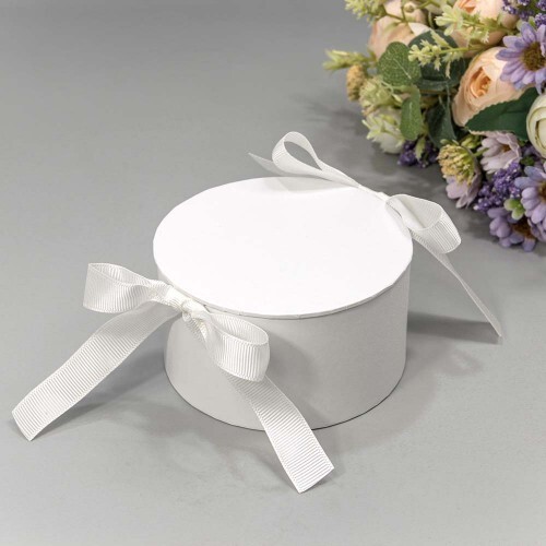 Подарочная коробка круглая 11*6 см Белый с лентами 446965б
