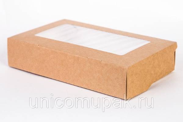 Коробка самосборная 10*8*4 см Крафт с окном 51673